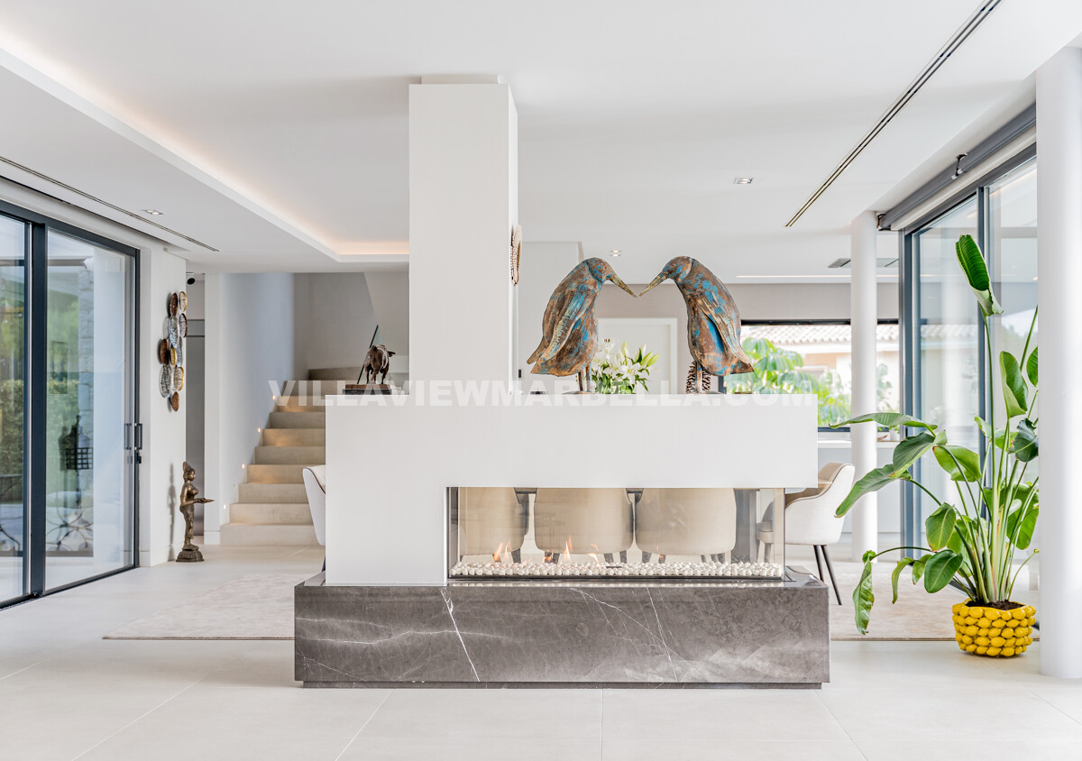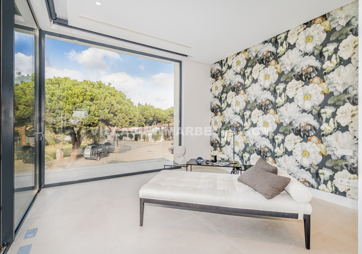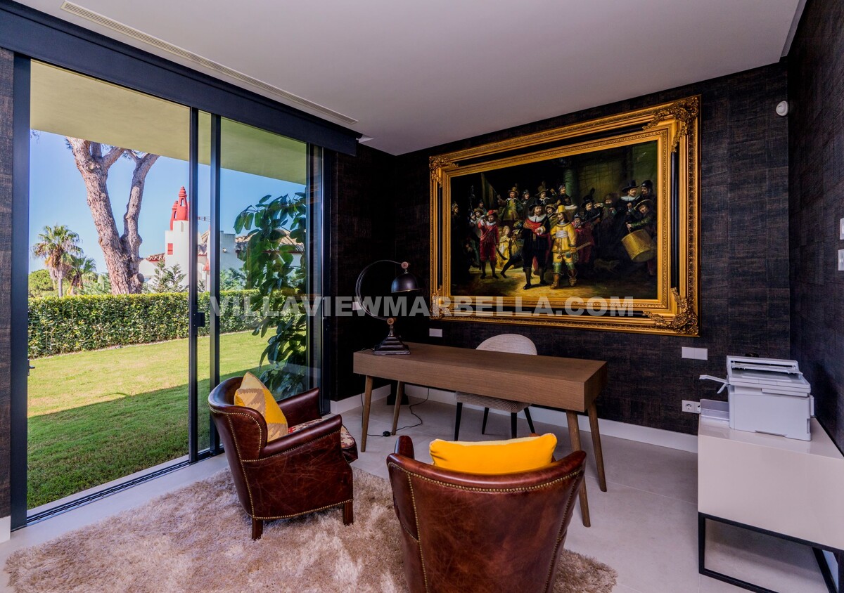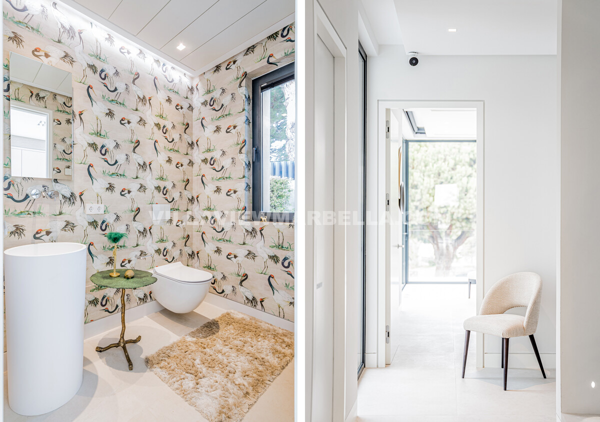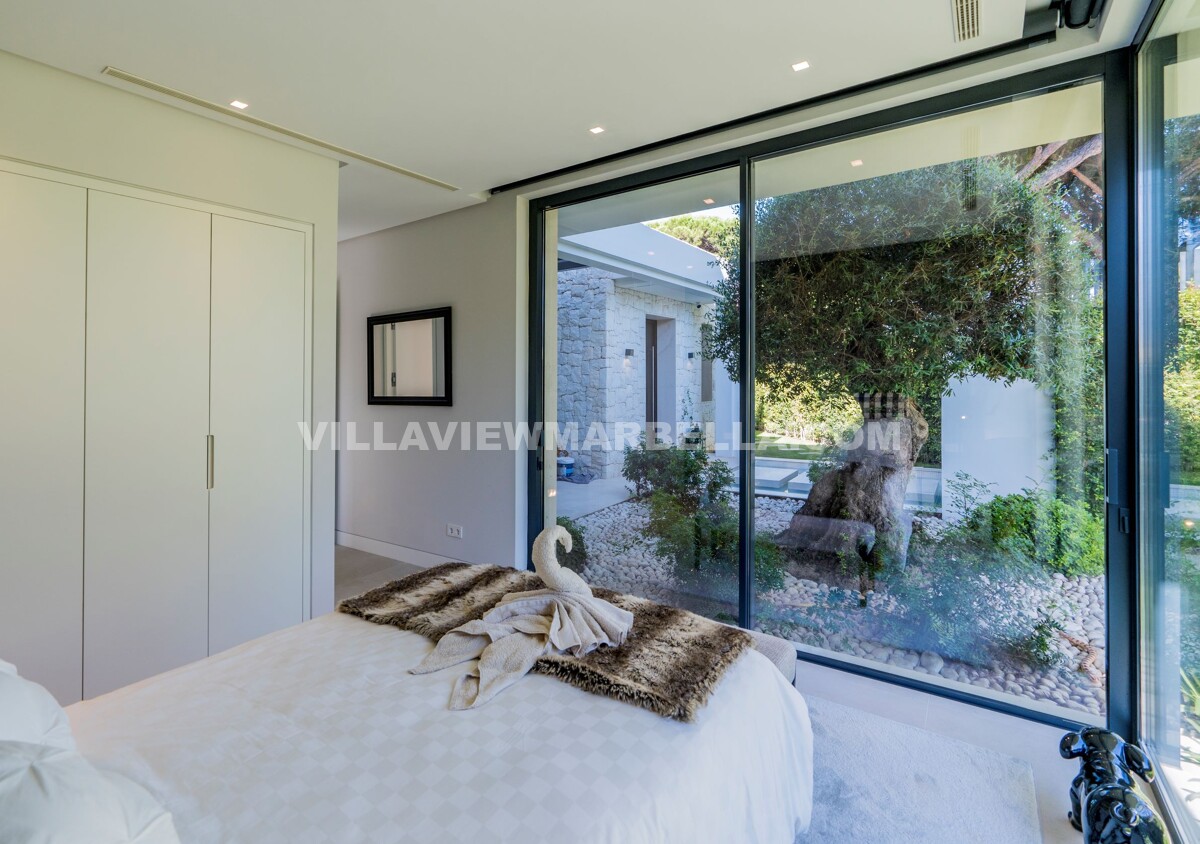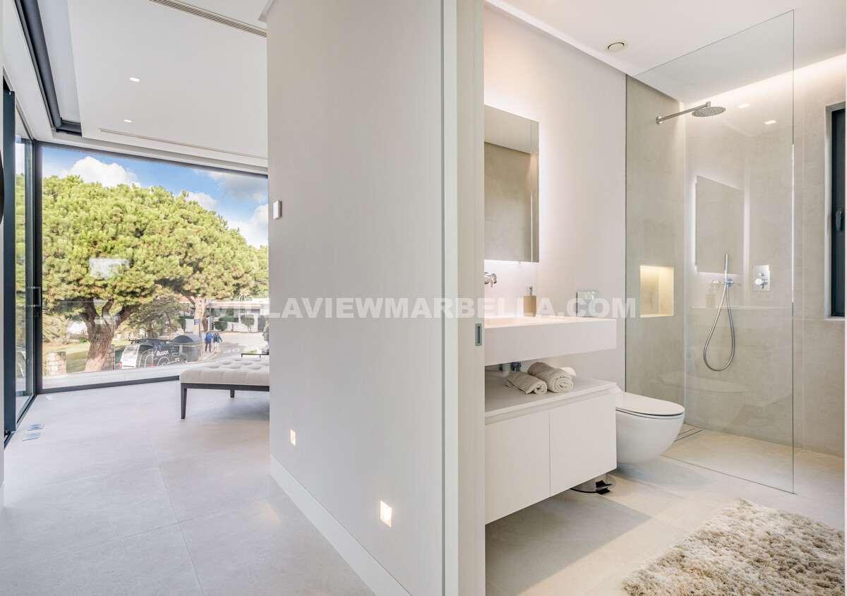 Upstairs, several bedroom suites open onto private terraces with pleasant views over the garden, surrounding greenery and towards the sea. The rooftop solarium provides panoramic coastal views and features a Jacuzzi, offering a relaxing space to enjoy the Marbella climate throughout the day.